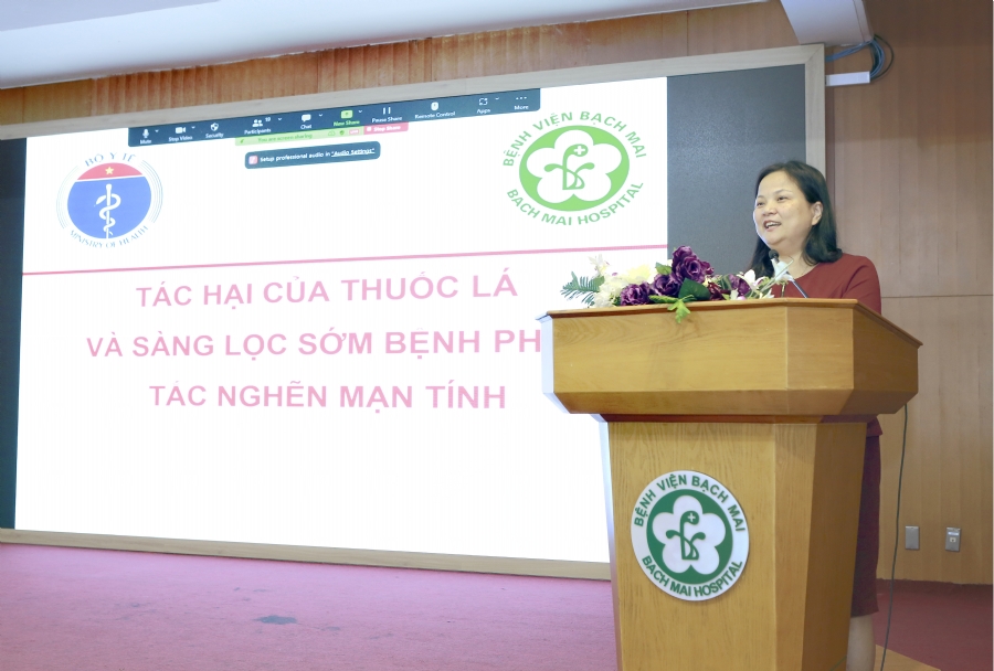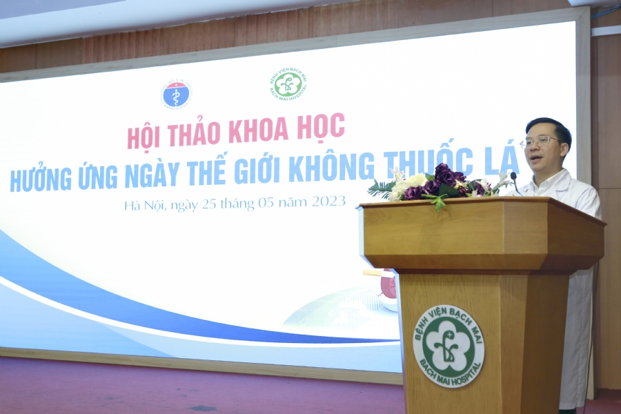 Phát biểu khai mạc Hội thảo, PGS.TS. Vũ Văn Giáp – Phó Giám đốc Bệnh viện Bạch Mai nhấn mạnh tác hại của thuốc lá, đặc biệt là thuốc lá thế hệ mới (thuốc lá điện tử, thuốc lá nung nóng), cũng như vai trò quan trọng của cán bộ nhân viên y tế trong việc tư vấn cai nghiện, tầm soát phát hiện sớm những trường hợp mắc các bệnh có liên quan đến thuốc lá.